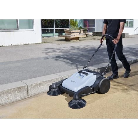 - Compacte et légère, la balayeuse peut également être utilisée dans des zones encombrées. Les brosses tournent par entraînement lorsque la machine est poussée en avant par l’utilisateur. Sans aucune motorisation, l’utilisation est, de ce fait, très silencieuse et possible en journée pour gagner en productivité.